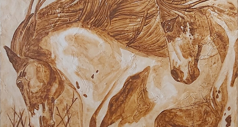 Cuando supe que podía lograr casi todo con café, fue cuando empecé a meterle poquito de color sin embargo lo rechacé, no era precisamente lo que quería. No me gusta ya usar colores acrílicos y tampoco quise meterme con el plástico, pues ya tengo muchos años yéndome a lo orgánico, tanto en escultura como como en pintura. Siempre he trabajado el barro en escultura, pero no de una forma tradicional, sino la clásica antigua que es a puro sol, sombra y tiempo.